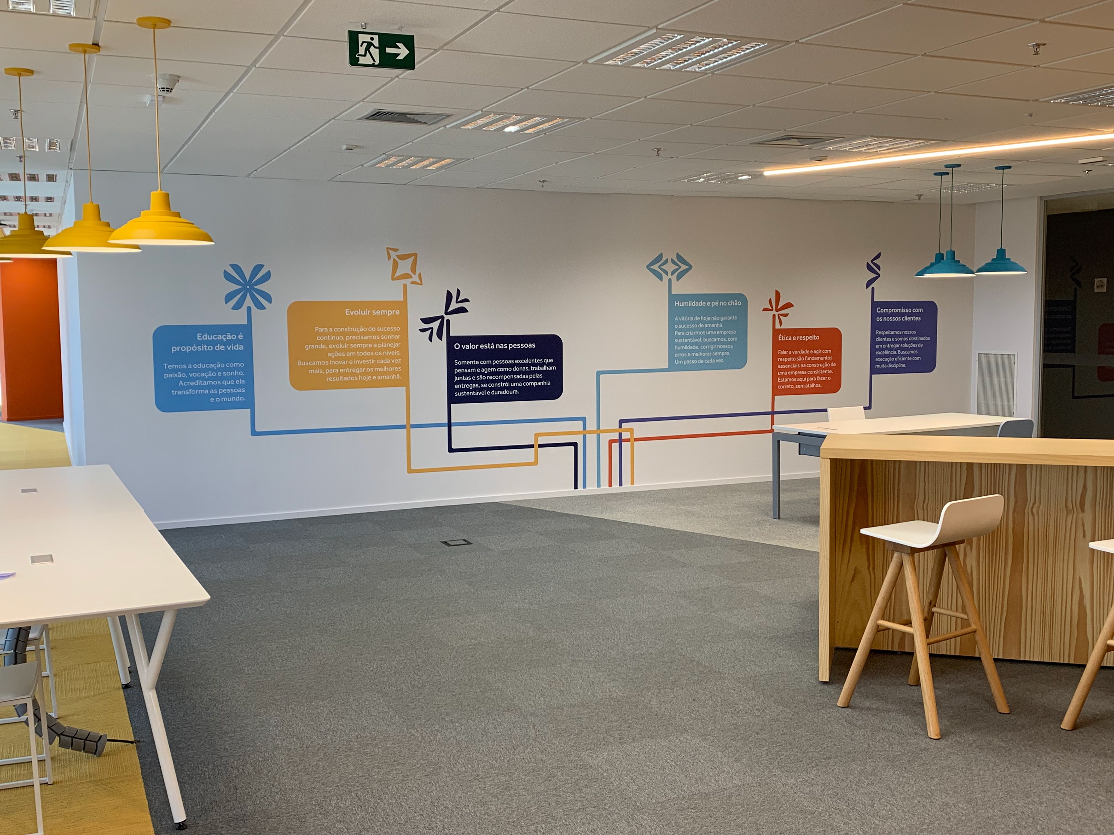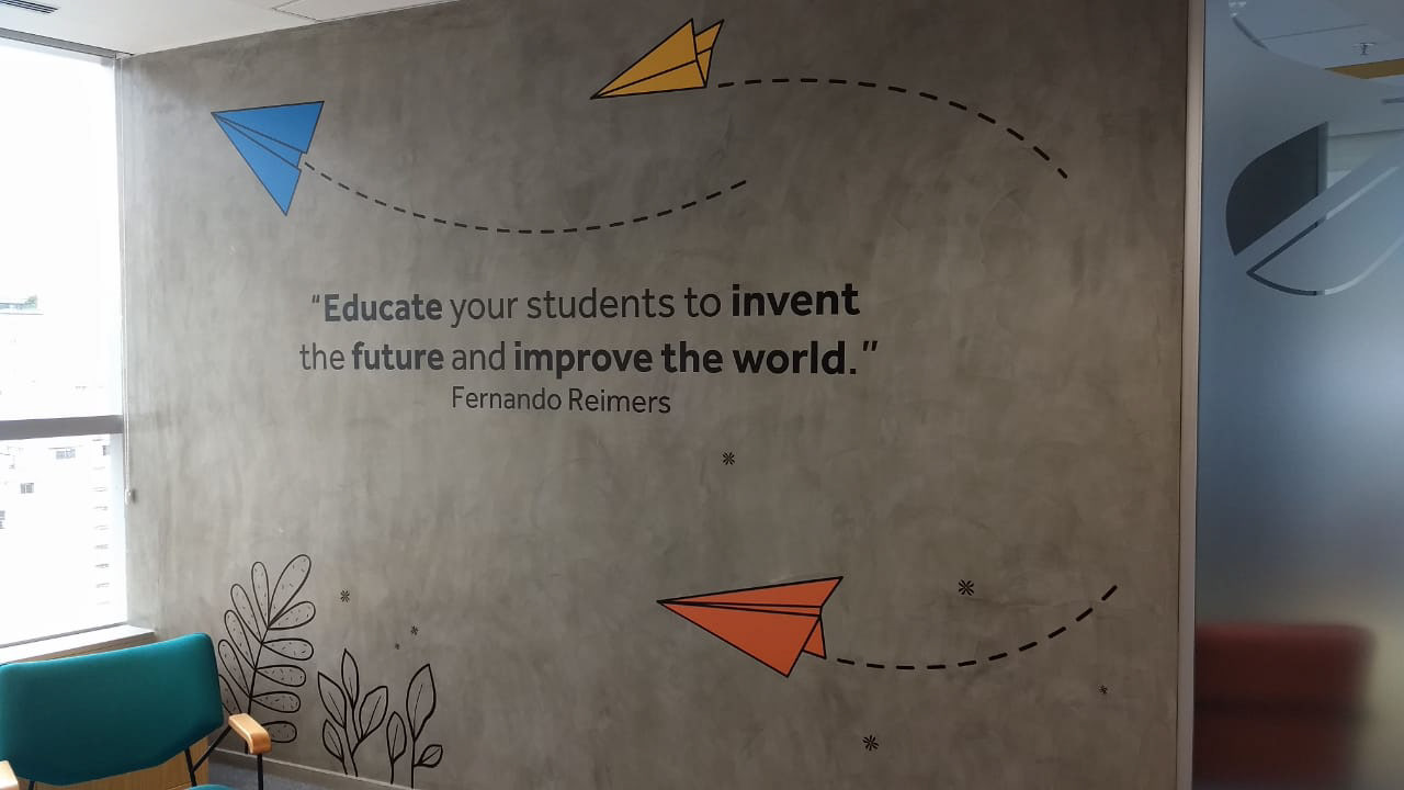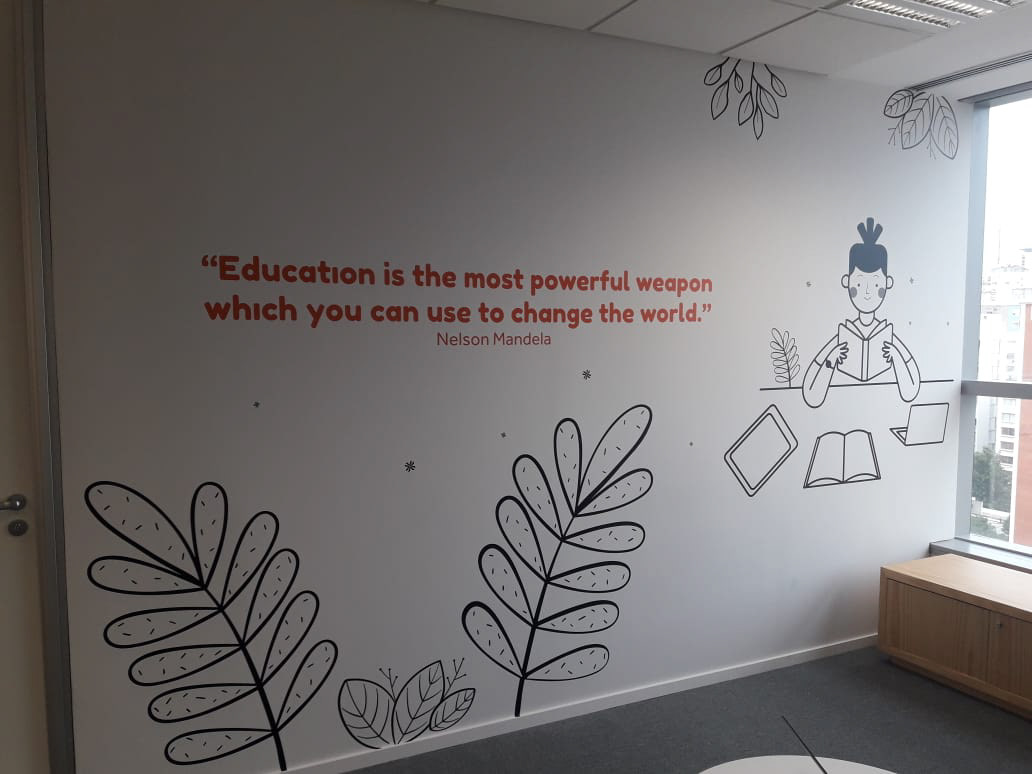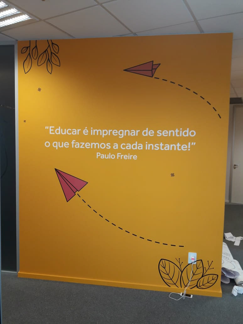 Comunicação Visual e sinalização com adesivos de parede em impressão digital e recorte eletrônico.